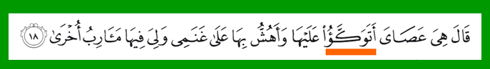Wuxuu yidhi (Nabi Muuse) iyada waa Ushaydii waan ku Tukubaa (cuskada) korkeeda waxna waan ugu lulaa (Laamah geedaha baan ugu soo laalaadiyaaa) Adhigayga dana kalena waan ku qabsadaa.